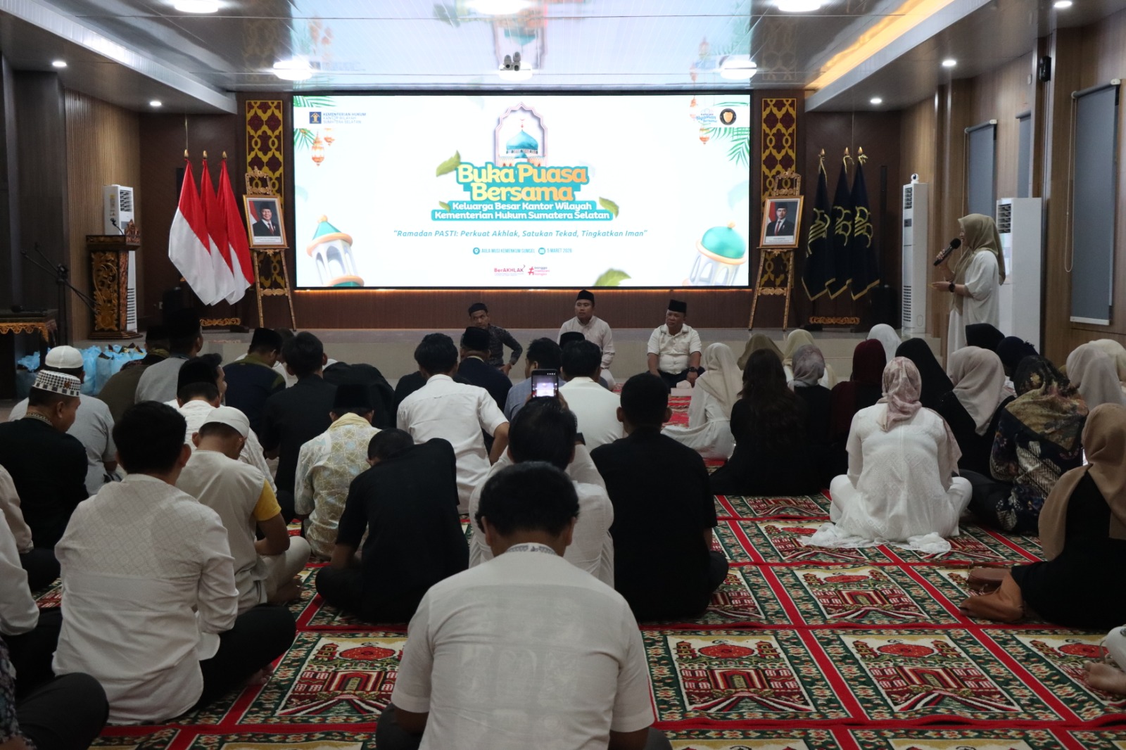 PALEMBANG, RAKYATSULBAR.COM – Kantor Wilayah Kementerian Hukum Sumatera Selatan menggelar kegiatan buka puasa bersama dan silaturahmi Ramadhan 1447 H, bertempat di Aula Kantor Wilayah Kementerian Hukum Sumatera Selatan (5/3).