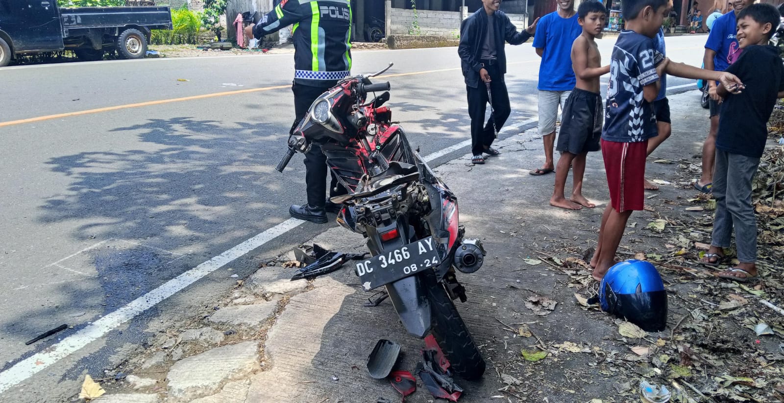 “Iya benar pak, saya tadi lihat pengendara roda dua tergeletak di jalan usai berbenturan dengan mobil,” singkatnya saat ditemui di lokasi.