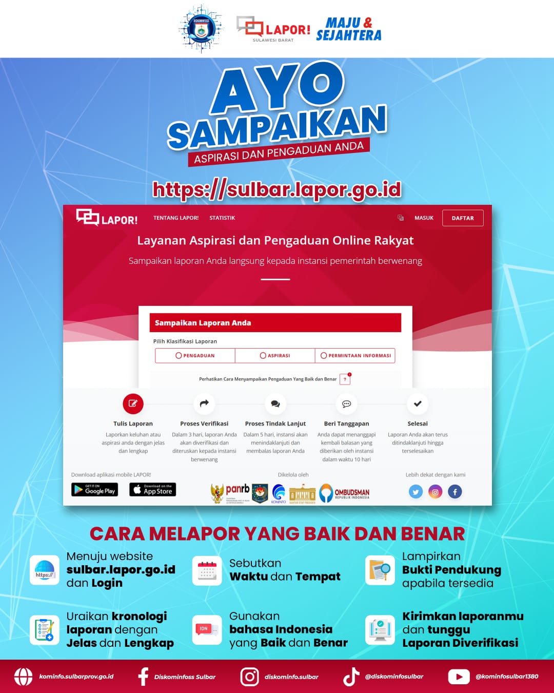 MAMUJU, RAKYATSULBAR.COM –Pemerintah daerah melalui Dinas Komunikasi dan Informatika mengajak masyarakat untuk tidak ragu melaporkan berbagai persoalan pelayanan publik melalui aplikasi SP4N-LAPOR (Sistem Pengelolaan Pengaduan Pelayanan Publik Nasional – Layanan Aspirasi dan Pengaduan Online Rakyat).