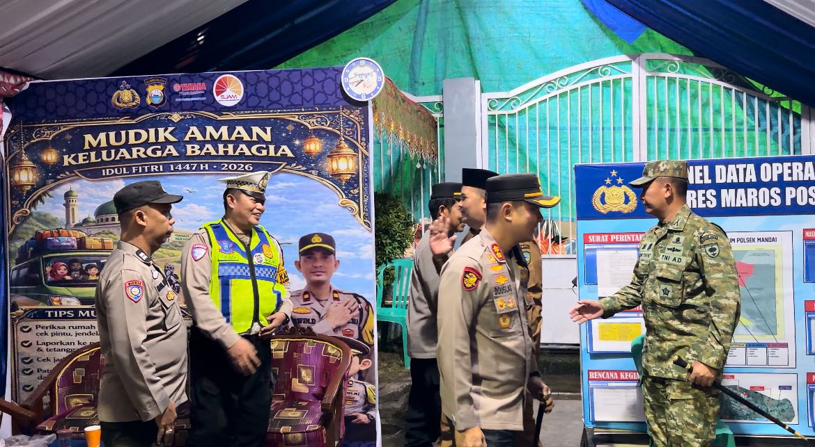 MAROS, RAKYATSULBAR.COM — Dalam rangka memastikan situasi keamanan dan ketertiban masyarakat tetap kondusif pada malam takbiran, Kapolres Maros AKBP Douglas Mahendrajaya, S.H., S.I.K., M.I.K., M.Tr.Opsla bersama Forum Koordinasi Pimpinan Daerah (Forkopimda) Kabupaten Maros turun langsung melakukan pengecekan di Pos Pengamanan (Pos Pam) Grand Mall Mandai, Jumat (20/3/2026).