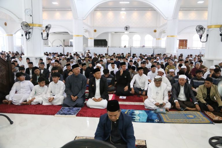 LUWU TIMUR , RAKYATSULBAR.COM – Suasana khidmat menyelimuti pelaksanaan Sholat Idul Fitri 1 Syawal 1447 Hijriah di Masjid Agung Malili, Sabtu (21/03/2026). Diiringi lantunan takbir yang menggema, Bupati Luwu Timur, Irwan Bachri Syam, bersama keluarga turut menunaikan ibadah bersama ratusan masyarakat.