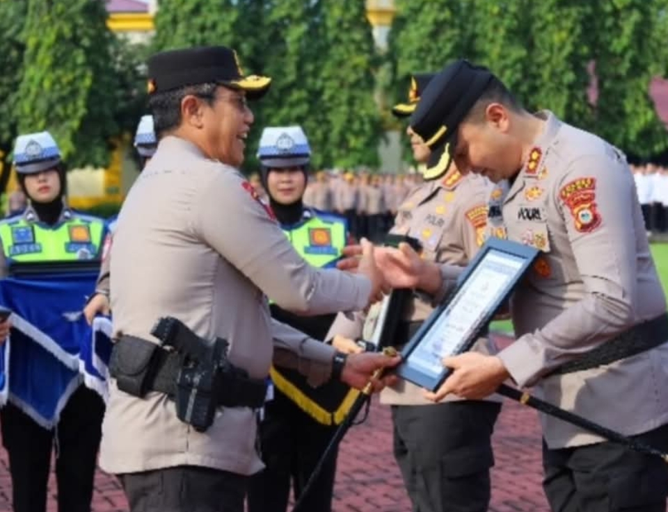 Penghargaan bergengsi tersebut diserahkan langsung oleh Kapolda Sulawesi Selatan, Irjen Pol Djuhandhani Rahardjo Puro, S.H., M.H., kepada Kapolres Gowa, AKBP Muhammad Aldy Sulaiman, S.I.K., M.Si., dalam upacara resmi yang berlangsung di Lapangan Upacara Mapolda Sulsel Senin, (30/3/2026).