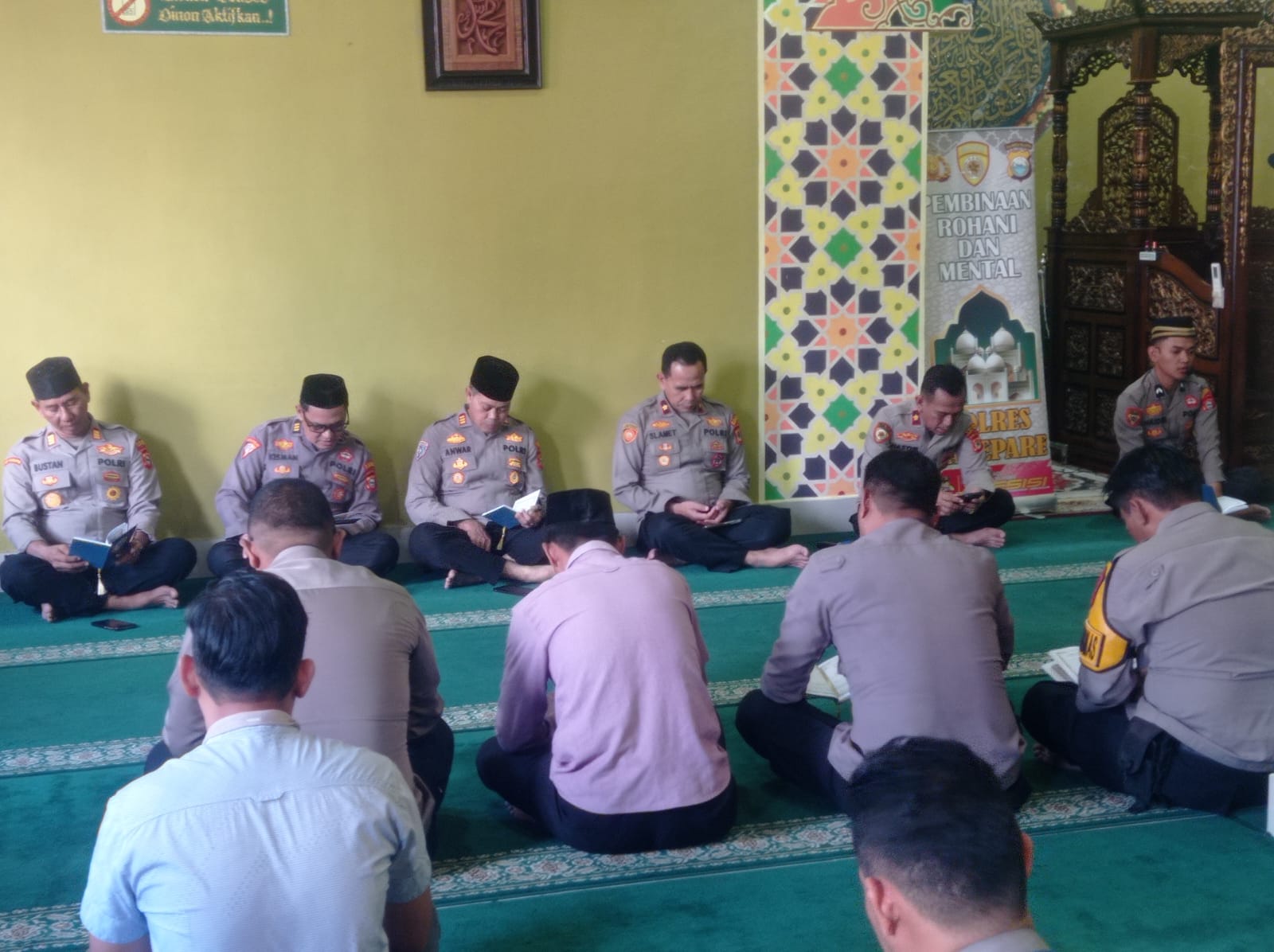 Puluhan personel tampak larut dalam lantunan ayat suci Al-Qur’an, khususnya Surah Yasin, yang dibaca secara berjamaah. Suasana religius begitu terasa, saat para personel menundukkan kepala, meninggalkan sejenak rutinitas tugas, dan menyatukan doa serta harapan.