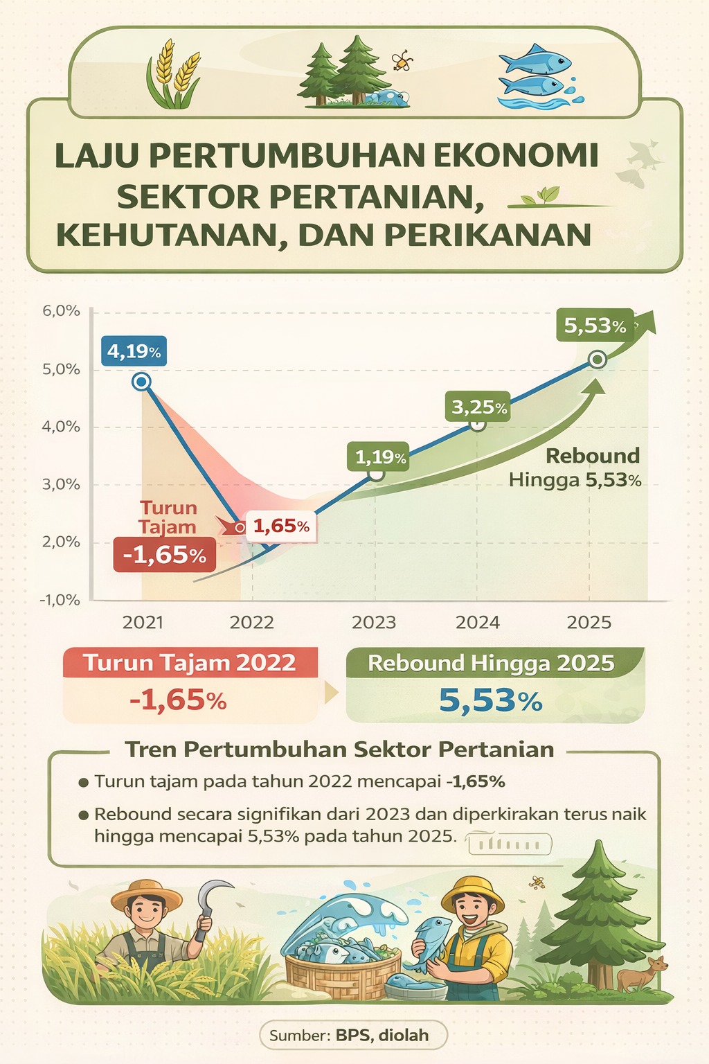 Berdasarkan data BPS yang diolah, sektor pertanian secara nasional memang sempat mengalami kontraksi atau penurunan tajam sebesar -1,65% pada tahun 2022.