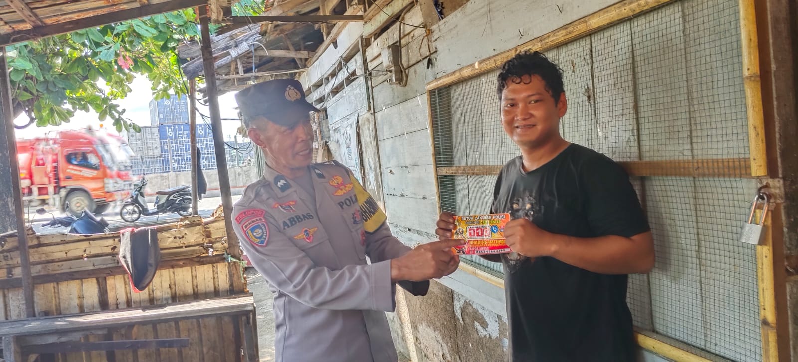 Dalam kegiatan tersebut, Aipda Abbas menyampaikan secara langsung kepada warga terkait fungsi layanan Call Center 110. Ia juga memasang stiker layanan tersebut di rumah warga sebagai bentuk pengingat sekaligus memudahkan akses informasi bagi masyarakat.