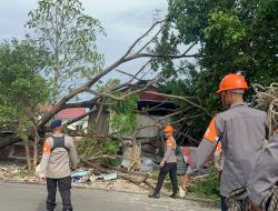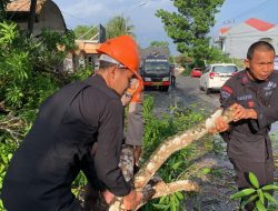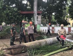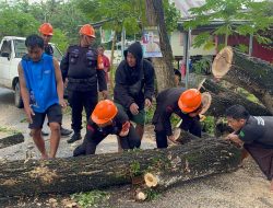 Aksi Bersama Brimob Bone dan Koramil Barebbo Bantu Pegawai Kecamatan Barebbo Potong Pohon Berukuran Besar