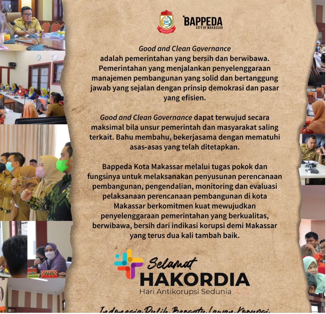 Hari Korupsi Sedunia 2022: Bappeda Makassar Komitmen Dukung Pemerintahan Bersih & Bebas Korupsi