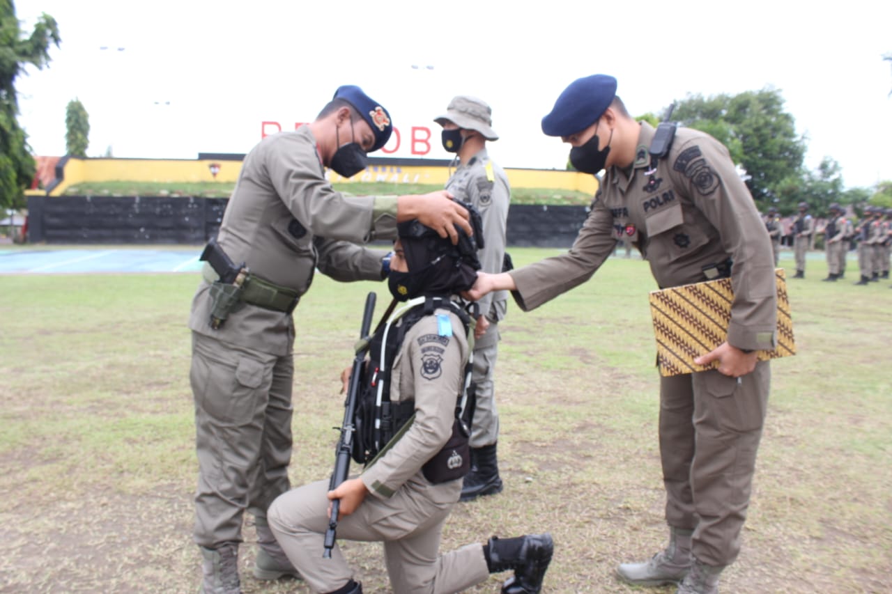 Dansat Brimob Polda Sulsel Hadiri Kegiatan Upacara Bendera Peringatan Hari korban 40.000 Jiwa Rakyat Sulsel ke – 74 Tahun