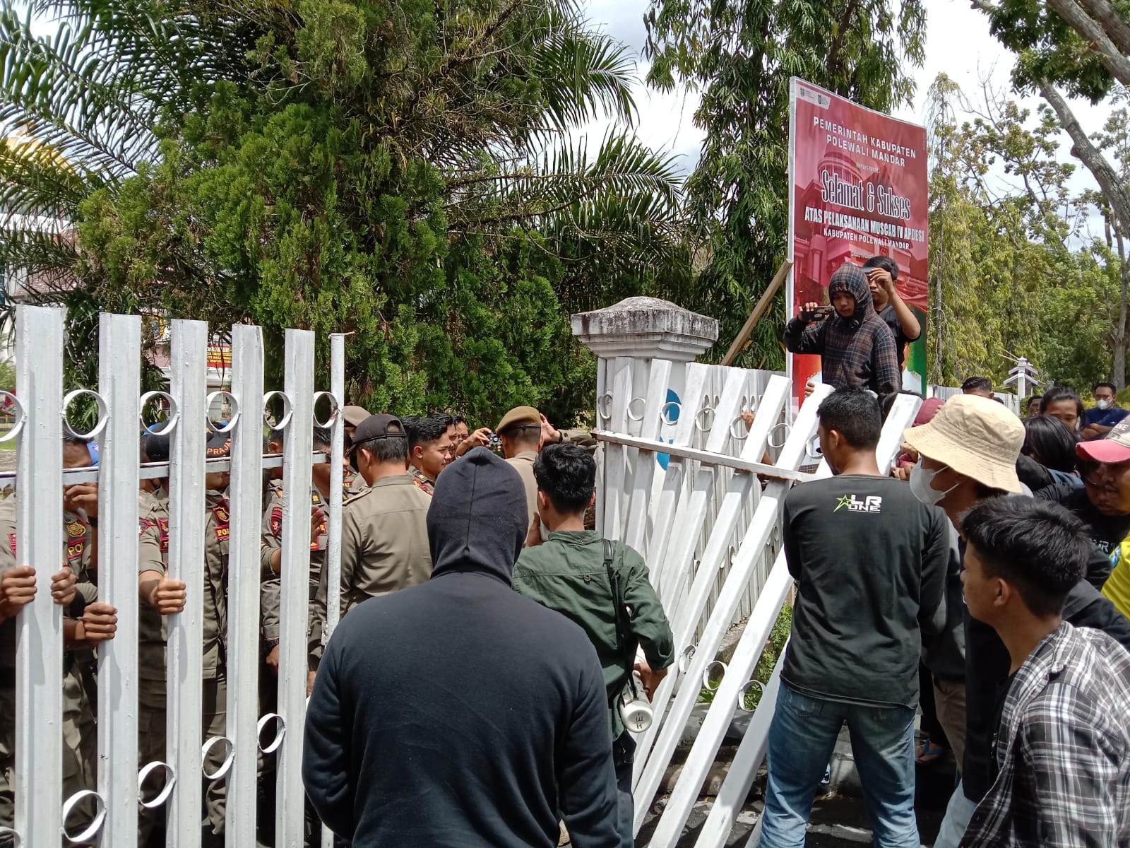 Tuntutan Tidak Digubris, Massa HMI Rusak Gerbang Kantor Bupati Polman