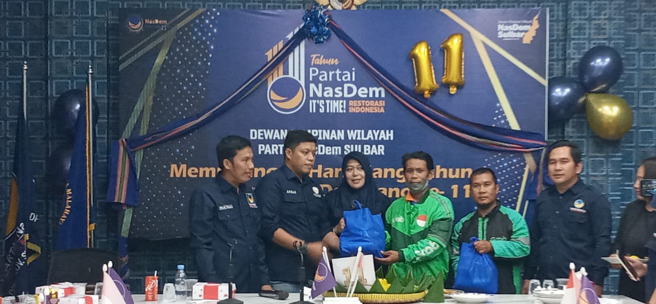 Hut NasDem Ke-11 Tema “It’s Time Restorasi Indonesia”, DPW Sulbar Warnai Penyerahan Bingkisan Untuk Ojol