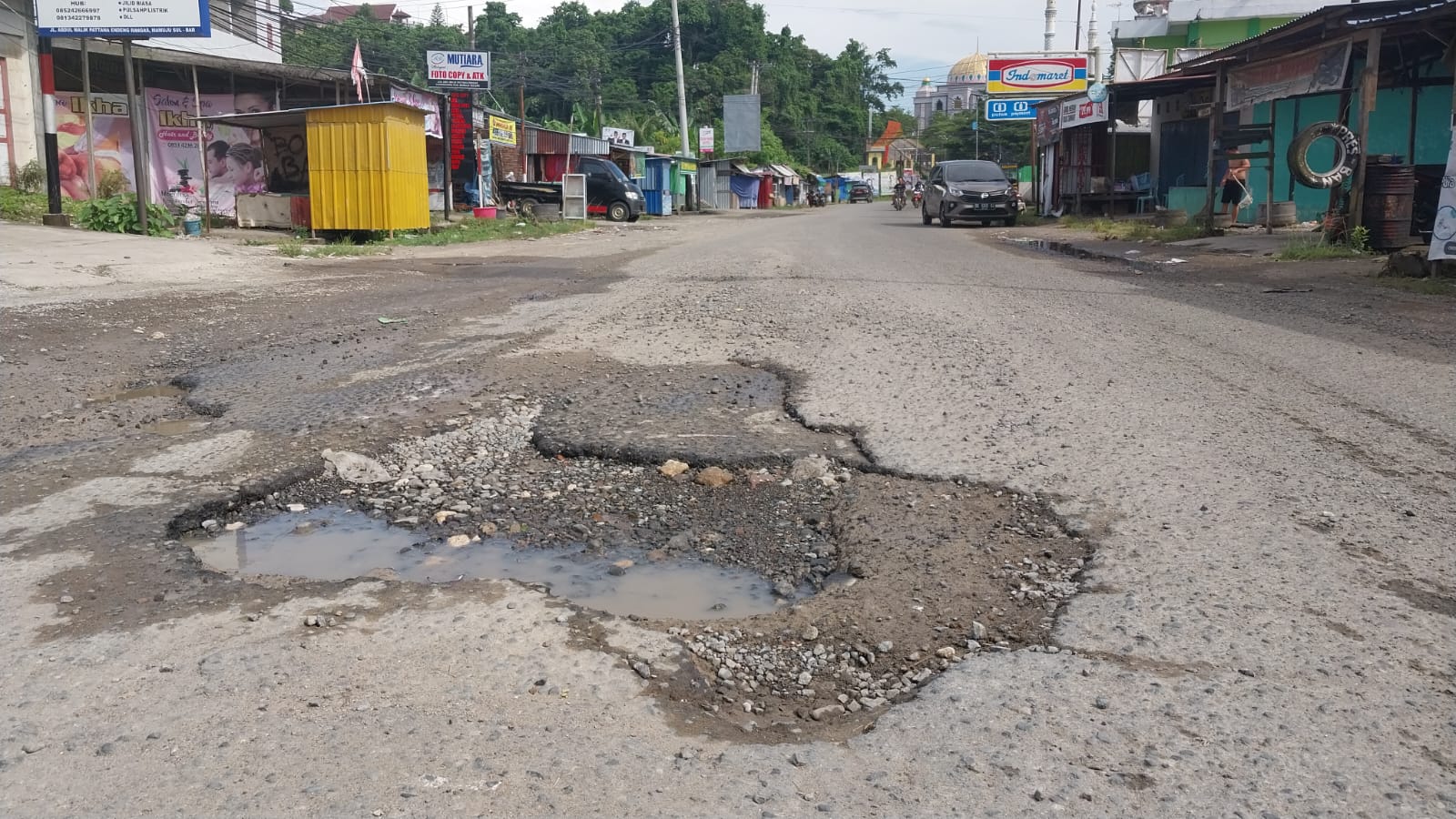 Lubang di Jalan H Abd Malik Pattana Endeng Membahayakan Pengendara
