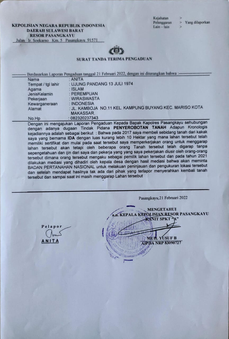 Soal Kasus Aduan Penyerobotan Tanah, Kasat Reskrim Pasangkayu Masih Tahap Penyelidikan