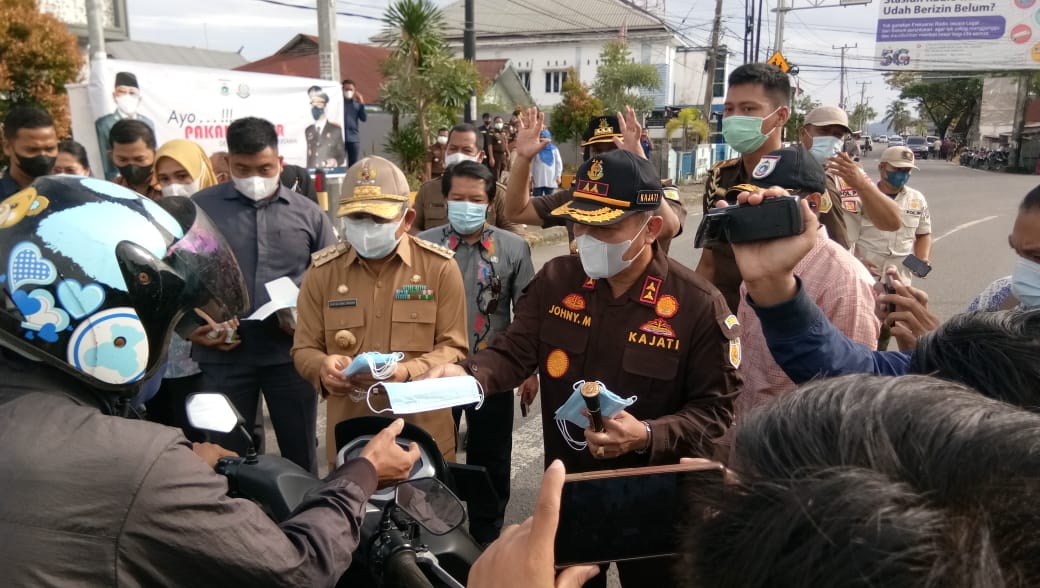 Kejati Sulbar Bersama Gubernur Sulbar Bagikan Masker Kepada Warga