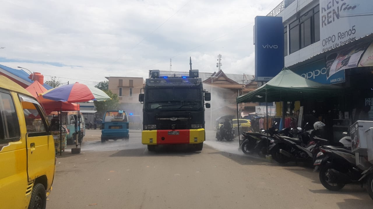 Polres Polman Semprotkan Desinfektan Untuk Mencegah Merebaknya Covid-19.