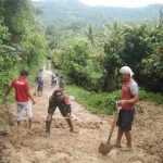 Anggota Kodim 1402/Polman Bersama Masyarakat Bersihkan Material Longsor di Luyo.